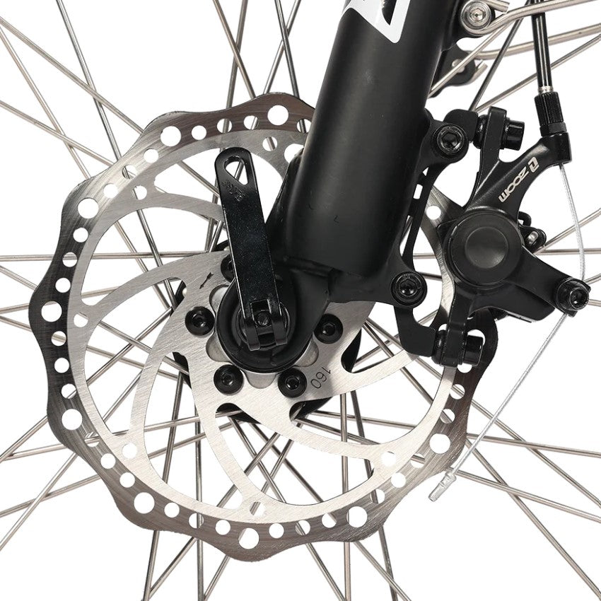 Our hydraulic disc brakes offer equal stopping power as mechanical brakes with less rider effort, thanks to non-compressible fluid. This results in optimal modulation of the brake pads against the rotor, providing a safer and more enjoyable riding experience. The closed-circuit system of our brakes keeps dirt out, ensuring consistent performance and durability of the brake pads and rotor.