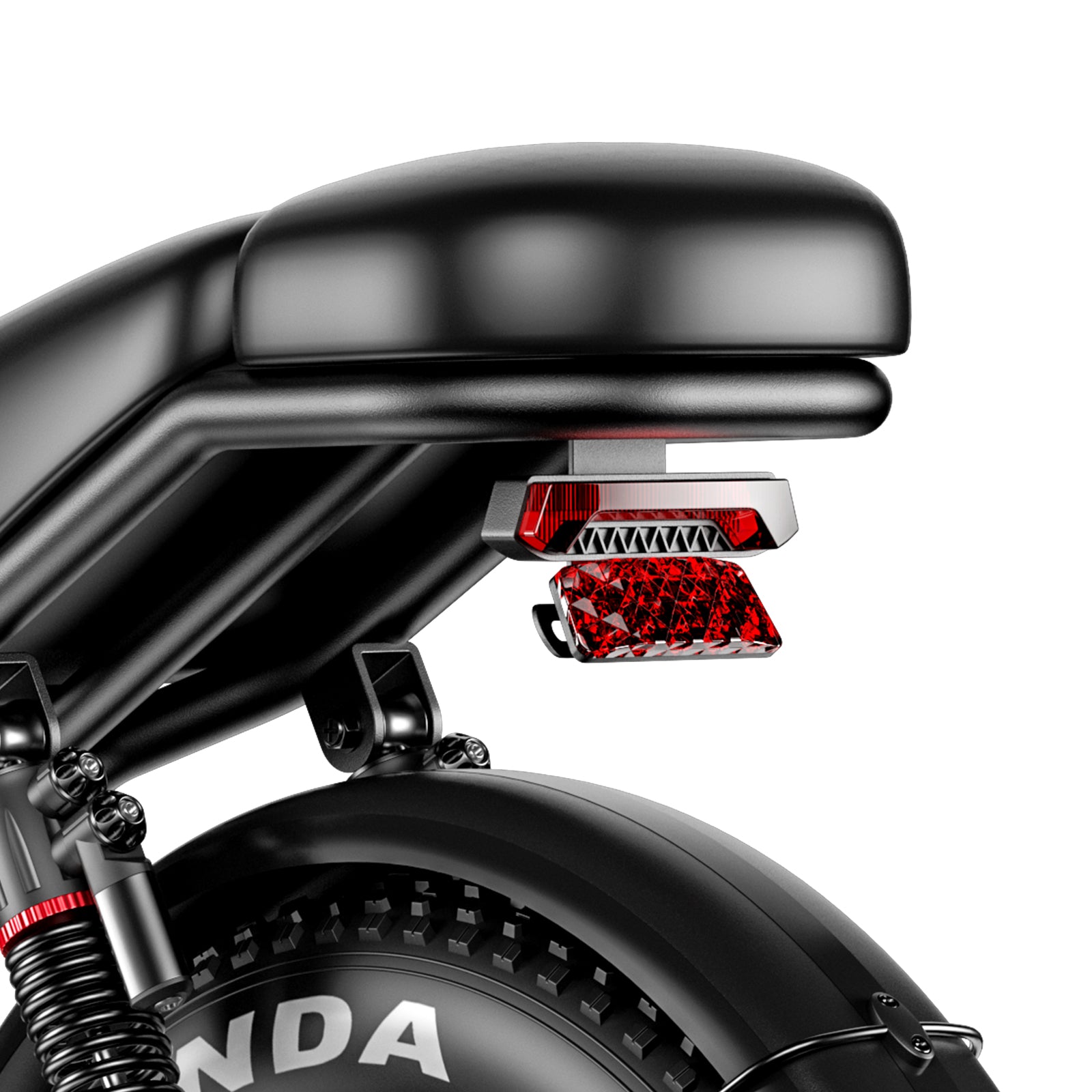 EMOKO C93 Ebike features thoughtfully designed dual seats, ensuring a comfortable ride for both the rider and passenger. The main saddle is ergonomically shaped to reduce pressure during long rides, while the rear seat offers sturdy support for an additional rider or cargo. Whether you're commuting with a friend or carrying extra gear, the dual-seat setup adds comfort and versatility to every journey.