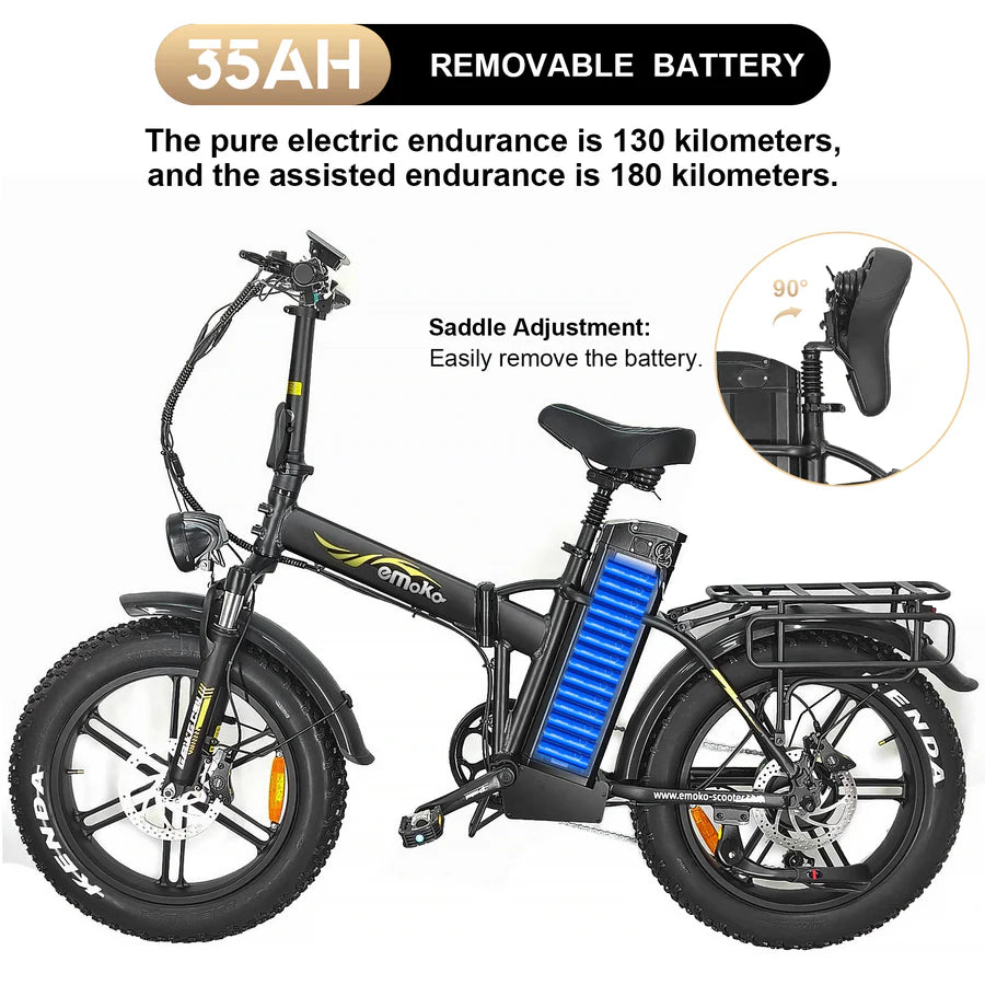Emoko C94 is purpose-built for long-distance travel and professional delivery. Equipped with a powerful 750W hub motor and an ultra-high-capacity 48V/35Ah lithium battery, it delivers an impressive range of up to 150km on a single charge. Whether you're a delivery rider who needs all-day reliability or an adventurer seeking extended rides, the C94 offers the perfect blend of power, endurance, and convenience.