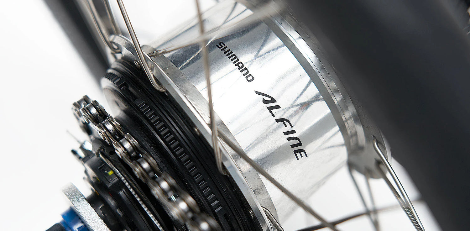 An internal geared hub has many advantages: it is largely trouble and maintenance-free and you can change gears even when stationary. For iruka we chose the high-quality and reliable Shimano internal geared hubs. It assures peace of mind even when riding on difficult roads with numerous ups and downs and frequent starts and stops.